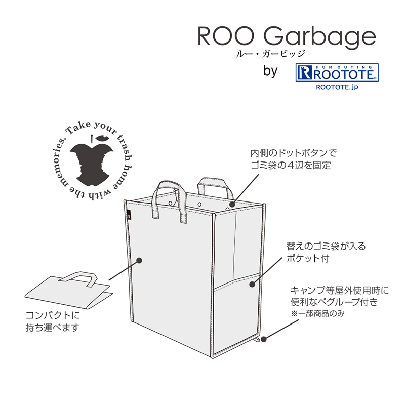 表面になでしことリン、裏面に千明、あおい、恵那とちくわのアウトドアセレクトショップをイメージした描き下ろしイラストを使用した、30リットル用のルーガービッジ。「ゴミは思い出と共に持ち帰ろう」という想いから生まれたルーガビッジ。アウトドア用品の収納や運搬はもちろん、30リットルのポリ袋をセットするとダストボックスに。屋内外で使えるトートバッグ型ダストボックス。素材には軽くて丈夫なポリプロピレンを使用。コンパクトに折りたたるのでアウトドアでも大活躍します。自立するので便利。 【商品仕様】 JANコード:4562206515550 (C)あfろ・芳文社/野外活動委員会 |