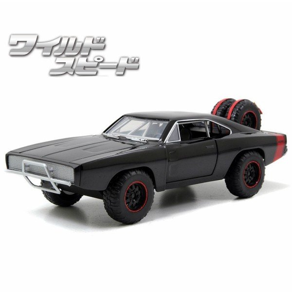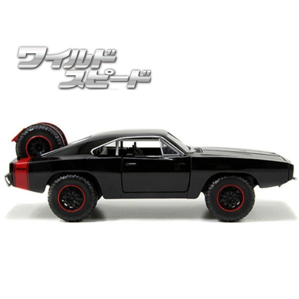 映画『 ワイルドスピード 』 好きに朗報! ワイルドスピードに登場するクルマが1:24サイズでリアルに再現されてます。映画ワイルドスピードのシリーズ7作目『 SKY MISSION 』でドムが運転する、「チャージャー オフロードカスタム」です♪劇場では飛んでいる輸送機から飛び出しパラシュートを使って着地して山道を走るため、ドでかいオフロードタイヤを履いて、シャーシやサスペンションを強化している【チャージャー オフロード】ですが、実際はオフロードレーサー車にチャージャーの外装パネルを被せたワンオフカスタムカーのようです。ワイルドスピードらしいタフ&マッスルなデザイン♪リアに装備されているスペアタイヤがカッコイイ! 【サイズ】パッケージW250/D120/H120mm |