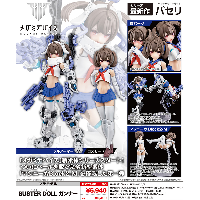 ついにベールを脱ぐ完全新型素体「マシニーカBlock2-M」を搭載した第一弾メガミはBUSTER DOLL ガンナー!!