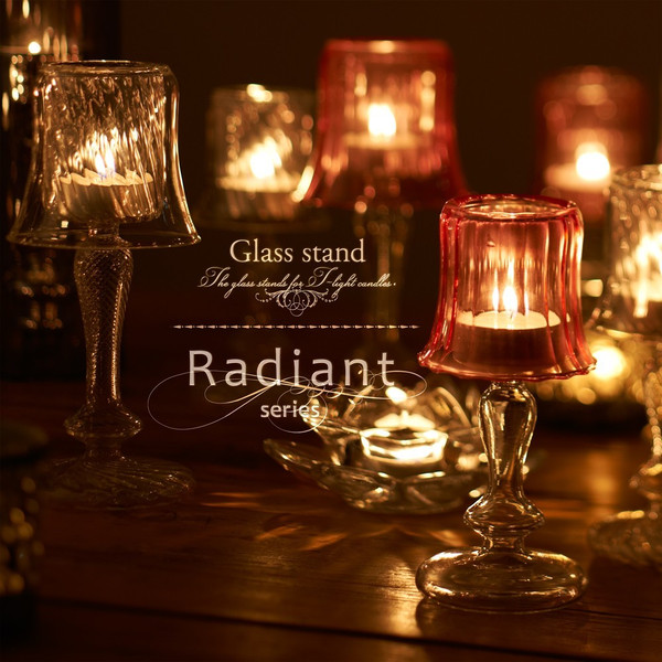 キャンドルホルダーを置いたテーブルの上より、少しだけ高い位置で明りを灯したいと思い、このカタチになりました。ラディアントシリーズは、熔けたガラスを金属の型の中に風船を膨らますように吹き込んで成形する、型吹きガラス(技法)で作られています。一見同じ形に見えても、注意深く見つめていくと、それぞれの個性が見えてきます。