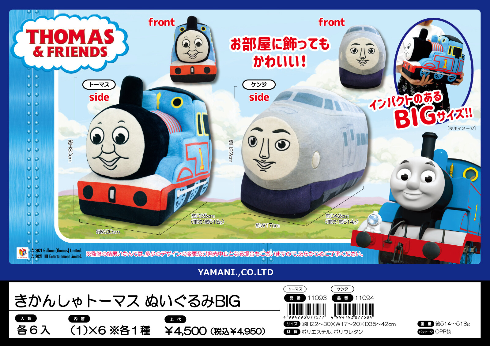 きかんしゃトーマス ぬいぐるみBIG 全長 35cm 小売価格: ¥4,950(税込) 販売価格: (15%OFF) ¥4,200(税込) 在庫数 : 1 ポイント: 42pt 単位: 個 発送目安: 即日 個