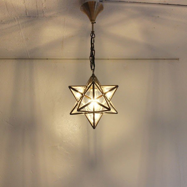 真鍮の素材そのものを生かした、星型ペンダントランプはビンテージ加工の、落ち着いた大人の佇まい。